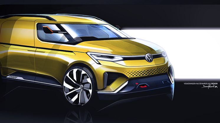 Designskitserne af den nye Caddy i Cargo-versionen afslører flere markante stilelementer, der vil gå igen på den endelig produktionsklare kassevogns-version af femte generation Caddy.