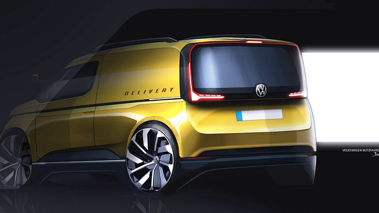 Det gælder eksempelvis de markante lodret arrangerede, smalle LED-lys bagpå. Disse vises også på personbilsversionen. Koncepttegningerne viser også et bagrudeparti, hvilket er et vigtigt element i personbilsvarianten. I overensstemmelse med kundernes ønsker fås varebilsversionen af den nye Caddy også med en bagklap uden bagrude, og man fortsætter med at tilbyde svingdøre som mulighed.