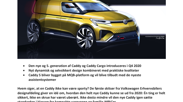 - Den nye og 5. generation af Caddy og Caddy Cargo introduceres i Q4 2020