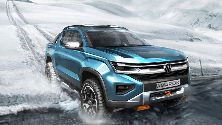 På baggrund af samarbejdet med Ford kan Volkswagen næste år præsenterer den nye Amarok. Med en ny designskitse understreger den administrerende direktør hos Volkswagen Erhvervsbiler den klare ambition: ”Det bliver ikke bare en fremragende pickup. Det bliver også en ægte Volkswagen – med tydelige kendetegn både teknisk og designmæssigt”.