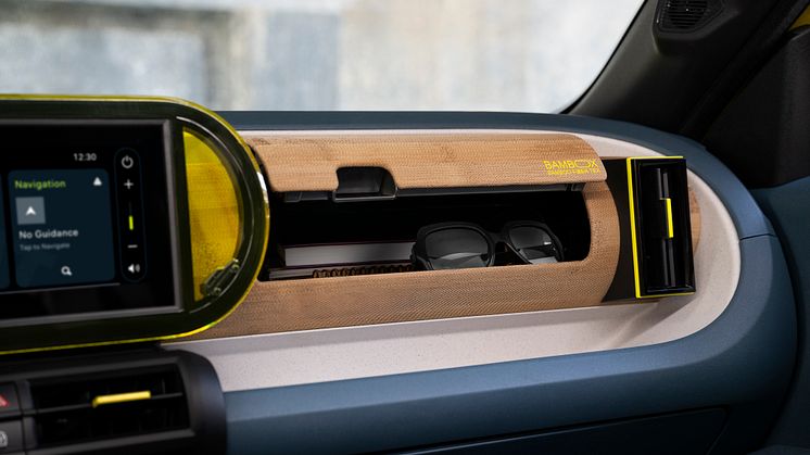 Designet trækker tydelige referencer til den originale Panda med cool elementer fra 80´erne, der har fået et nutidigt tvist. De markante hjulkasser, den karakteristiske Pixel LED-lyssignatur og det 3D-printede Panda-logo på dørene hylder den ikoniske Panda 4x4. Kabinen er spækket med legesyge detaljer, bl.a. en miniature af den oprindelige Panda indbygget i rammen om den 10” touchskærm og interiørinspiration fra FIATs historiske Lingotto-bygning i Torino, hvis ovale form ses flere steder i kabinen. Grande Panda er også en pioner i brugen af nye materialer: De blå plastdetaljer i kabinen er skabt af genbrug fra 140 drikkekartoner pr. bil, og instrumentbrættet prydes af BAMBOX Bamboo Fiber Tex® - et tekstil med ægte bambusfibre, der giver kabinen både karakter og naturinspiration.