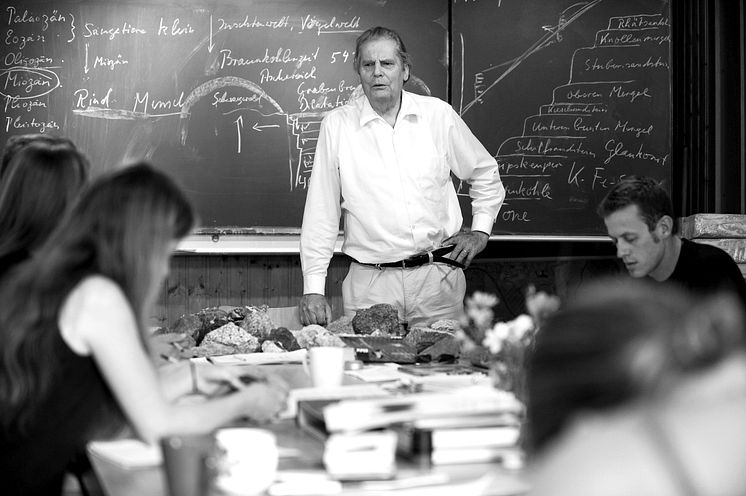 Manfred Klett con estudiantes en una clase de geología, 2009, Landbauschule des Dottenfelderhofs