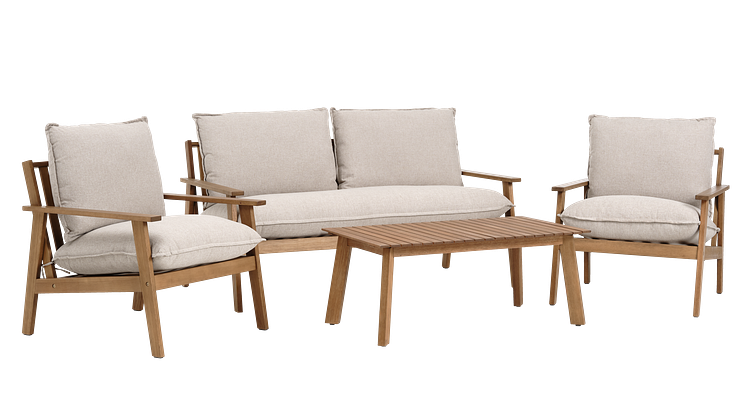 Otra novedad es el set de muebles de jardín RYDDET. Está hecho de madera maciza clara, que irradia una expresión moderna sin renunciar al ambiente cálido y acogedor que puede proporcionar la madera.