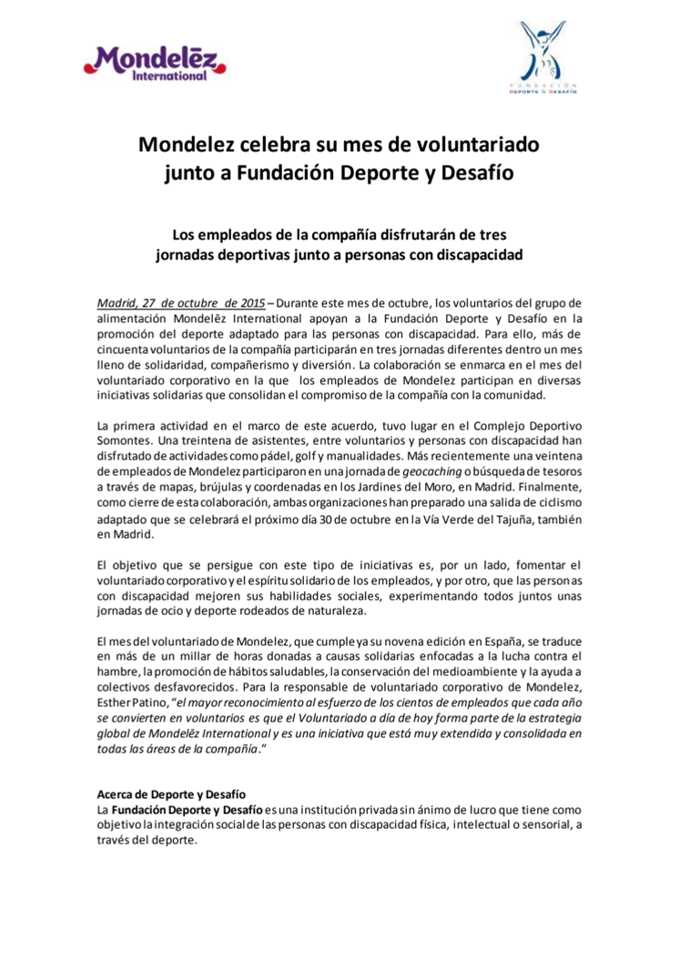 Mondelez celebra su mes de voluntariado junto a Fundación Deporte y Desafío