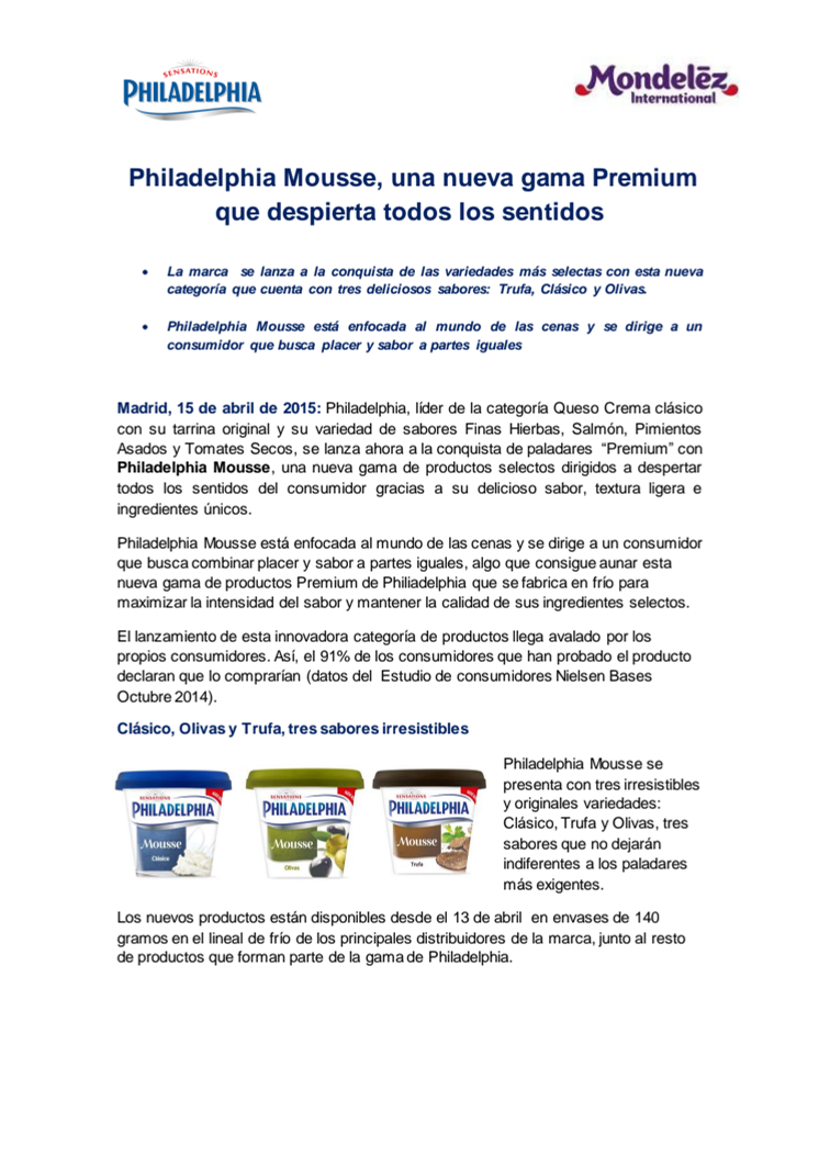 Philadelphia Mousse está enfocada al mundo de las cenas y se dirige a un consumidor que busca placer y sabor a partes iguales