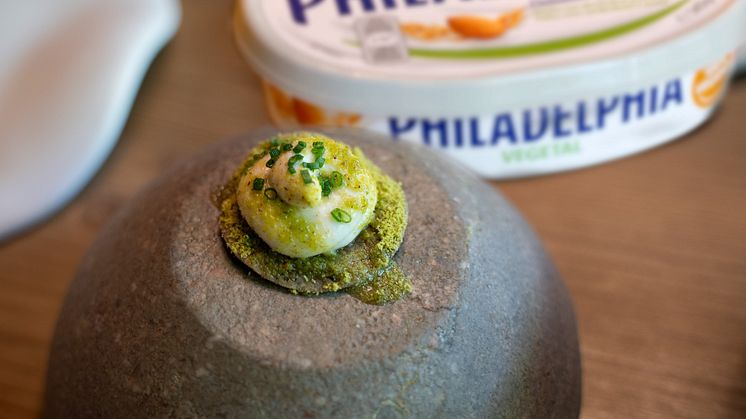 - Mousse de crema de Philadelphia Vegetal y pistacho