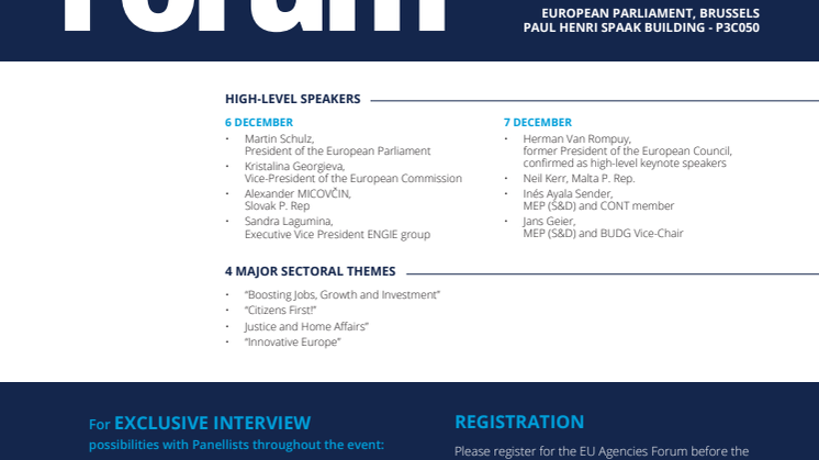 • Save the date: EU Agencies Forum in the European Parliament on 6 – 7 December 2016