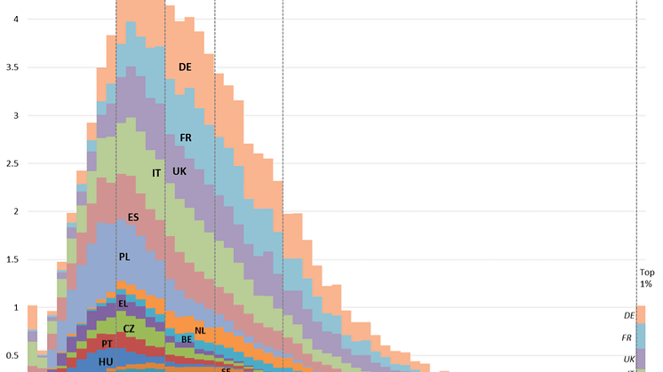 • EU household disposable income distribution in PPS-euro, 2013 (Source: EU-SILC)