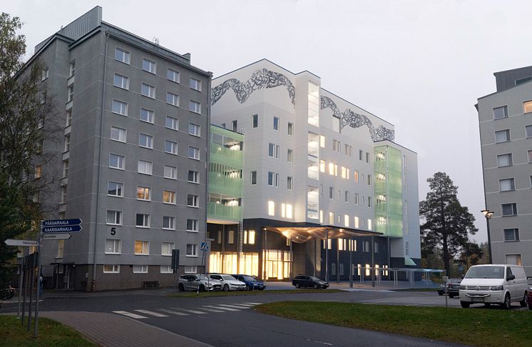 KYS_Psykiatriatalo_näkymä_Kaarisairaalaan3_kuva KYS Psykiatriatalo.jpg