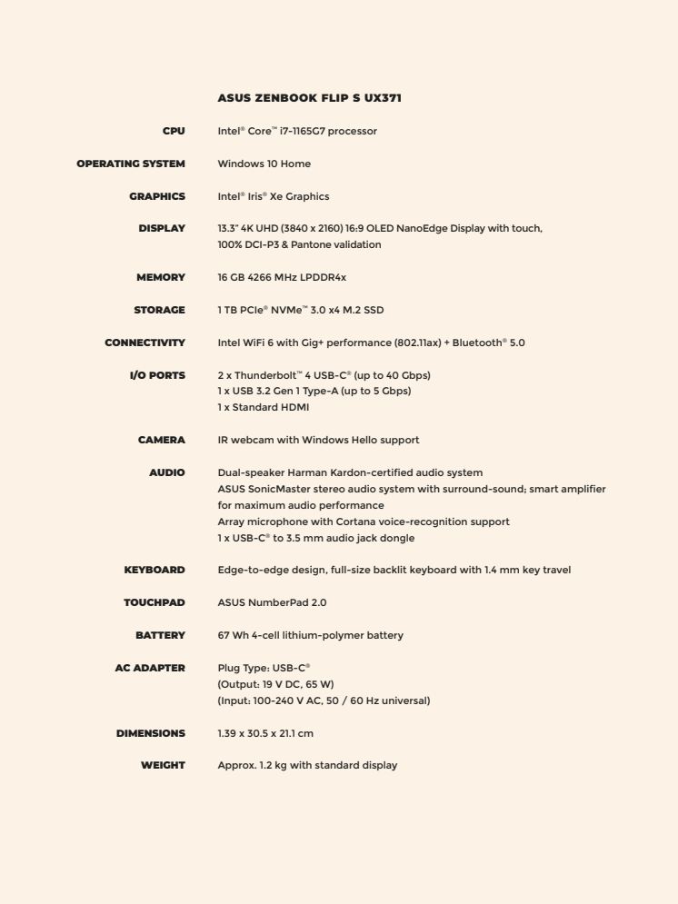 ASUS ZenBook Flip S (UX371) - (Specification sheet)