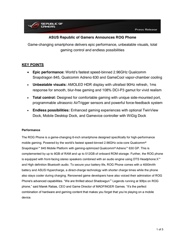 Game-changing smartphone delivers epic performance, unbeatable visuals, total gaming control and endless possibilities
