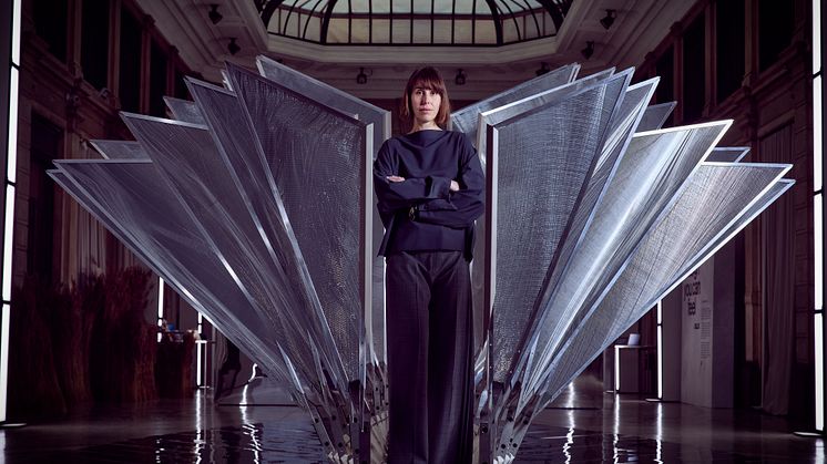 The themes of the Design You Can Feel exhibition will be encapsulated by a specially commissioned installation by Studio INI. Housed beneath the curved glass ceiling of Galleria Meravigli, the installation dynamically responds as visitors walk through it, their presence activating wing-like, semi-transparent panels that open and close behind them.