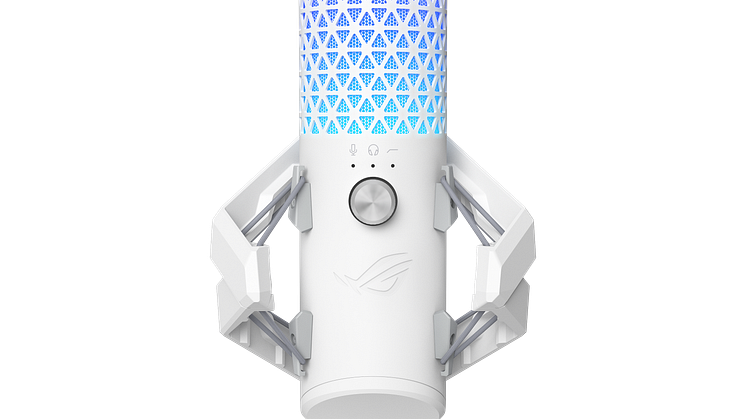 The ROG Carnyx is a professional-grade USB cardioid microphone that features a 25 mm condenser capsule for rich and warm vocal tones, plus a 192 kHz / 24-bit sampling rate to deliver extremely detailed high-fidelity audio. It includes a high-pass filter to reduce low-frequency noise to enhance voice clarity, a pop filter to prevent vocal plosives, and a premium metal shock mount that minimizes external vibrations to provide users with clean and uninterrupted recordings. The Carnyx's intuitive controls include a one-touch mute button, along with a multi-functional control knob to adjust the volume of the microphone and monitoring headset, as well as turn the high-pass filter on/off. Users can also show off their style with customizable Aura Sync RGB light effects that can be paired with compatible products across the ROG ecosystem to give their recording or streaming setup a unique, unified look.