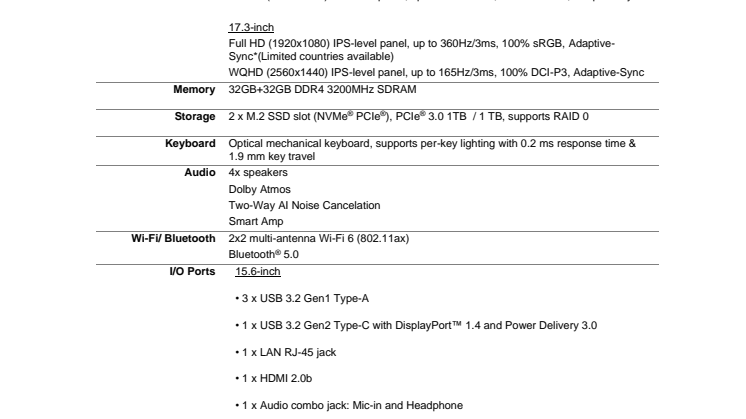 - ROG Strix G15 and G17: Stylish new gaming laptops accessible to all gamers, incorporating latest ROG technologies and offering exciting color options.