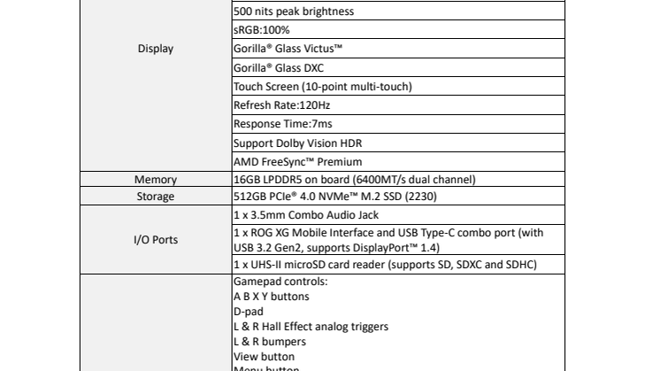 ROG is also proud to work with Xbox Game Studios, Capcom, HoYoverse, Level Infinite, 505 Games, Team 17, Nacon, Techland, Squanch Games, and Fatshark to provide the best gaming experience on the ROG Ally.