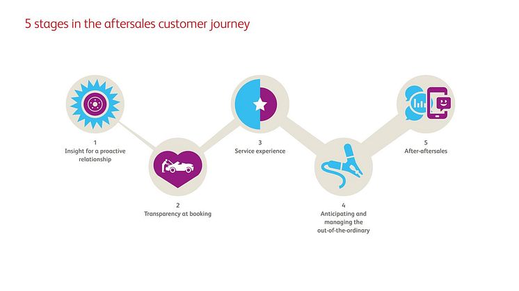 The BearingPoint Institute analyzed the interactions of OEMs with customers and developed a blueprint covering the five phases in the aftersales customer journey.