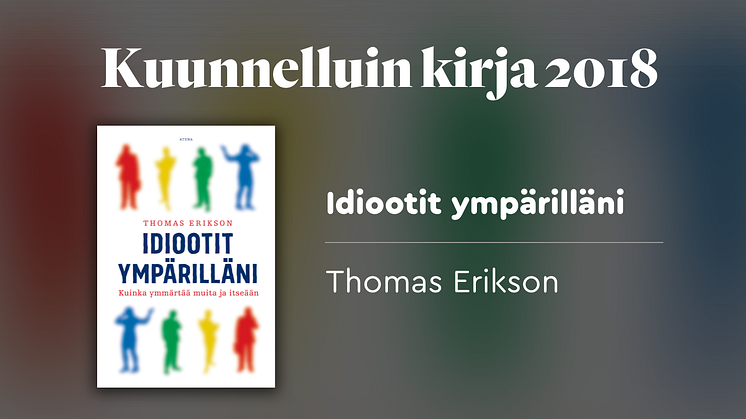 Vuoden 2018 kymmenen miljoonaa kuuntelutuntia jakaantuu lukuisille nimikkeille, mutta yksi äänikirjoista on kuitenkin ylitse muiden. Thomas Eriksonin Idiootit ympärilläni – kuinka ymmärtää muita ja itseään (Atena) on ylivoimaisesti kuunnelluin vuoden 2018 äänikirjauutuuksista ja nousi varsinaiseksi ilmiöksi äänikirjana.