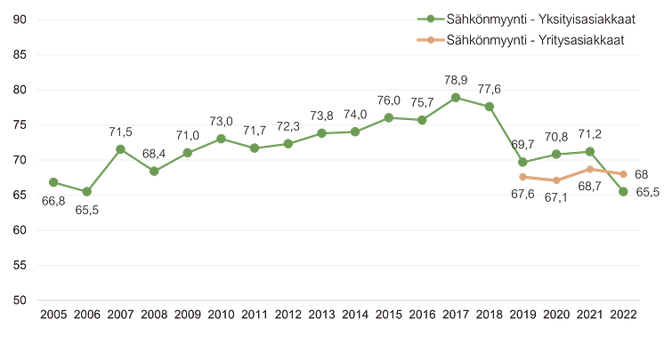 Sähkönmyynnin asiakastyytyväisyys 2005-2022