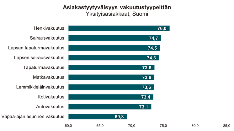 Asiakastyytyväisyys vakuutustyypeittäin 2022