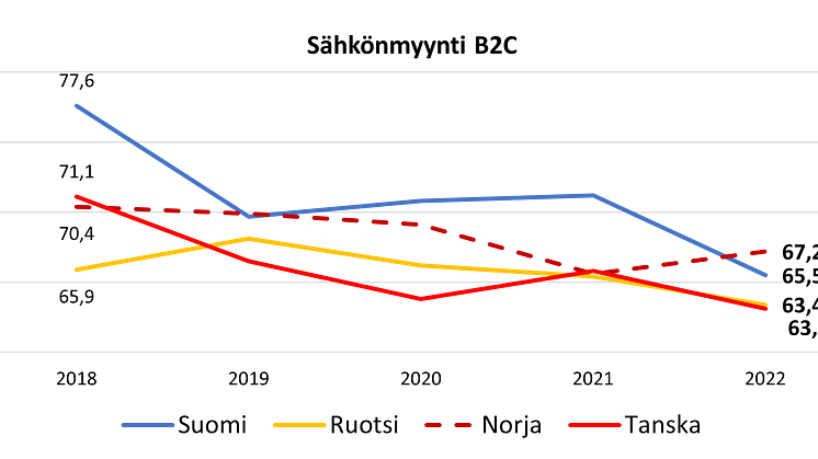 Sähkönmyynnin asiakastyytyväisyys Pohjoismaissa 2018-2022