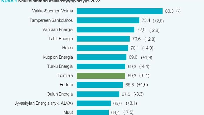 Kaukolämpö, asiakastyytyväisyys Suomessa 2022