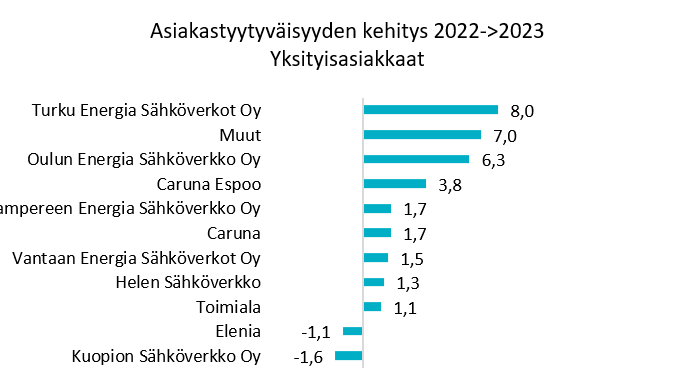 Sähkövenrrkiyhtiöiden asiakastyytyväisyyden kehtiys 2023, yksityisasiakkaat