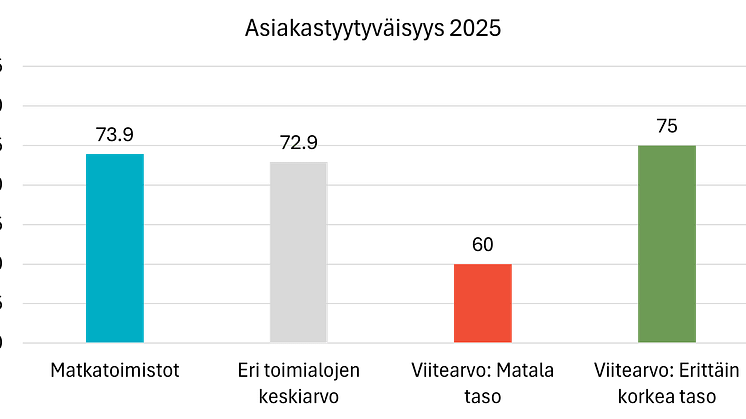 Vuoden 2025 tutkimus on EPSI Ratingin ensimmäinen toimialakatsaus Suomen matkatoimistoista. Mukana ovat TUI, Aurinkomatkat, Tjäreborg sekä useita pienempiä toimijoita kattava "muut"-ryhmä. Tutkimukseen haastateltiin maalis-toukokuussa 2025 n. 600 suomalaista, jotka olivat edeltävän 12kk:n aikana olleet asiakkaana matkatoimistolla. Tulokset tarjoavat ensimmäistä kertaa kattavan näkymän siihen, missä suomalaiset matkatoimistot onnistuvat – ja missä ne jäävät jälkeen. Alan asiakastyytyväisyysindeksiksi mitattiin 73,9, kun nyrkkisääntönä asteikolla voidaan pitää alle 60 pisteen tuloksia osoituksena tyytymättömistä asiakkaista ja yli 75 pisteen tuloksia osoituksen erittäin tyytyväisistä asiakkaista. Tyytyväisyys ylittää pisteellä muiden EPSI Ratingin mittaamien toimialojen keskiarvon.