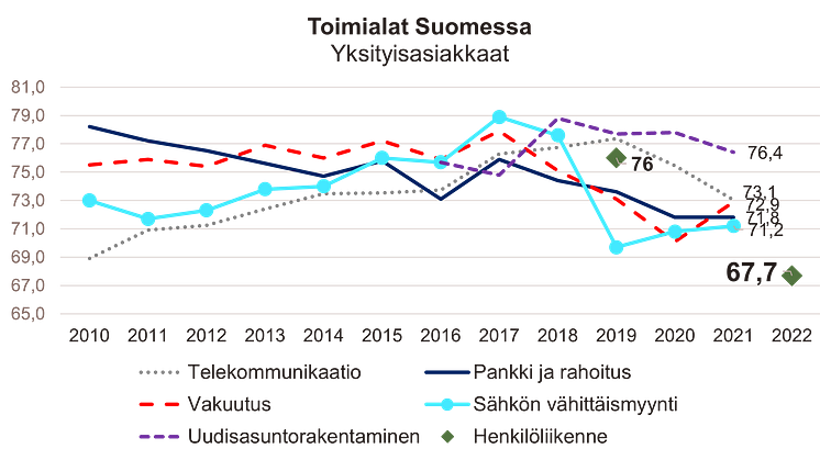 Kun samaan aikaan myös muita toimialoja koskevat vaatimukset esimerkiksi digitaalisista palveluista ja kestävyysasioita ovat kohoamassa, henkilöliikenteen asiakastyytyväisyyden lasku asettuu kontekstiin, jossa sitä voidaan pitää ennakoitavissa olleena. Pandemia-ajan entisestään vahvistamat laskutrendit ovat muilla toimialoilla pääosin jo pysähtyneet, mutta henkilöliikenteen asiakaskokemusta mitataan nyt kaiken kaikkiaan erilaisessa maailmassa kuin vuonna 2019.