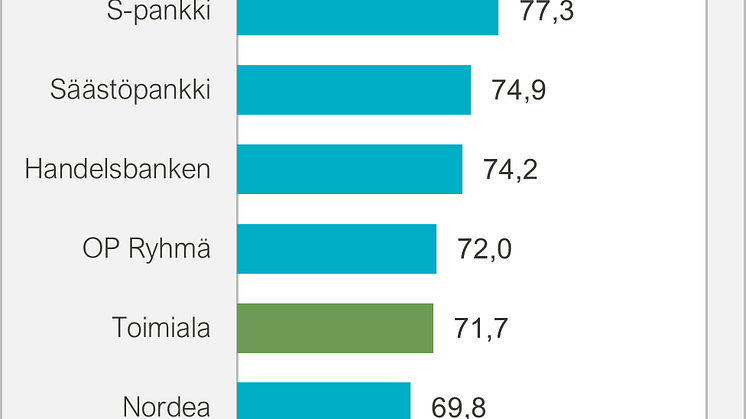 Rankingin kärkipaikat menevät kuitenkin edelleen POP Pankille, pääasiassa Ålandsbankenista ja OmaSäästöpankista koostuvalle Muut-ryhmälle sekä S-Pankille, ja Laitinen jatkaakin: ”Etulyöntiasema on joka tapauksessa edelleen niillä pankeilla, jotka onnistuvat vaalimaan asiakaskokemusta sillä tavalla jota juuri heidän asiakkaansa arvostavat. Näiden kärkipään kestomenestyjien kohdalla asioita on tehty oikein sekä digitaalisilla alustoilla että niiden ulkopuolella.”