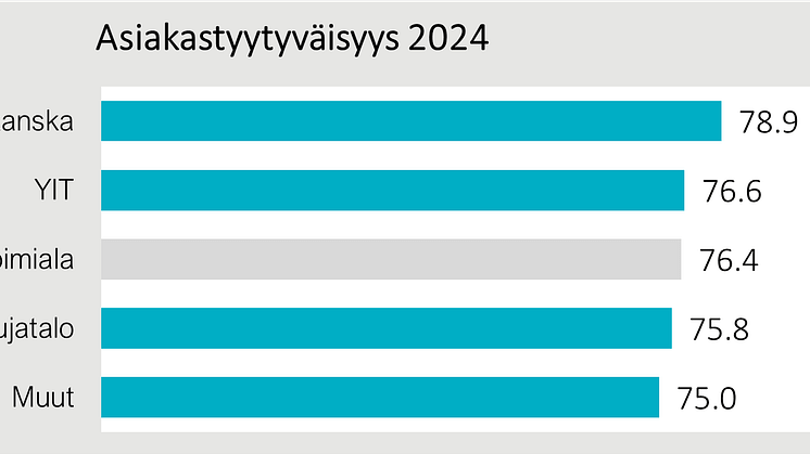 Skanskan lisäksi myös muut suurimmat toimijat ovat kehittäneet asiakaskokemustaan. Esimerkiksi Lujatalo nosti asiakastyytyväisyyttään 1,0 indeksipisteellä yltäen erittäin korkeaan asiakastyytyväisyystasoon (75,8). ”Lujatalon asiakastyytyväisyys on ollut viime vuosina nousussa, ja tuorein tulos on eritoten rahalle saatavan vastineen sekä tuotelaadun nousujen myötä historian toiseksi korkein yhtiölle mitattu”, taustoittaa Laitinen. YIT puolestaan paransi tulostaan 1,2 pisteellä (76,6) onnistuen nyt erityisesti rahalle saatavan vastineen ja palvelulaadun osalta. ”YIT lukeutuu tutkimuksen kestomenestyjiin, ja tuoreet tulokset ilmentävät paitsi vahvaa pohjaa korkealle tyytyväisyydelle, myös valmiutta ja kyvykkyyttä nostaa sitä entisestään”, Laitinen huomauttaa. ”Kaiken kaikkiaan toimialatason nousu vallitsevassa tilanteessa kertoo koko toimialan kyvystä kehittää palveluaan myös talouden epävarmuuden keskellä”, Laitinen päättää. Muut-ryhmä koostuu muista rakennusliikkeistä, ja ryhmälle mitattava tulos on 75. ”Ryhmän tulos on sekin erittäin hyvää tasoa, vaikkei ylläkään aivan samoihin lukemiin kuin erikseen arvioidut kolme toimijaa”, taustoittaa Laitinen. ”Muut-ryhmän tulos on myös linjassa aiempina vuosina mukana olleiden rakennusliikkeiden keskimääräisen tyytyväisyyden kanssa.”