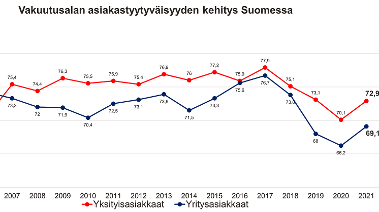 Vakuutusalan asiakastyytyväisyys kivunnut koronaa edeltävälle tasolle