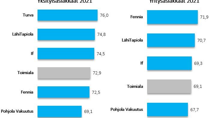 Yksityisasiakkaiden kärkeen sijoittuva Turva on voittanut toimijoiden yksityisasiakkaiden vertailun yhdentoista vuoden aikana jo kymmenen kertaa, ja Fennia yltää yritysasiakkaiden rankingin voittajaksi kolmatta vuotta putkeen.