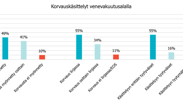 Venevakuutuksia tarjoaviin yhtiöihin ollaan Suomessa varsin tyytyväisiä, mutta yhtiöiden välillä on tyytyväisyydessä myös eroja. Korkein tyytyväisyys mitattiin Alandialle. Viimeisen kahden vuoden aikana korvaushakemuksen on tehnyt noin viidennes asiakkaista, ja selvästi suurin osa on tyytyväinen korvauskäsittelyprosessiin sekä sen lopputulokseen.