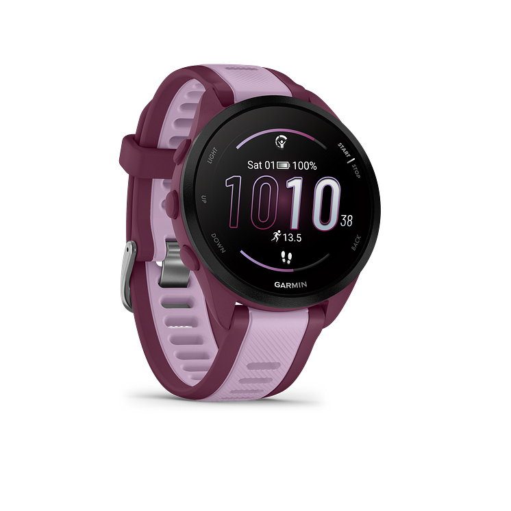 Forerunner165_HR_berry_front-right_0000_merlot_watchface_outlined