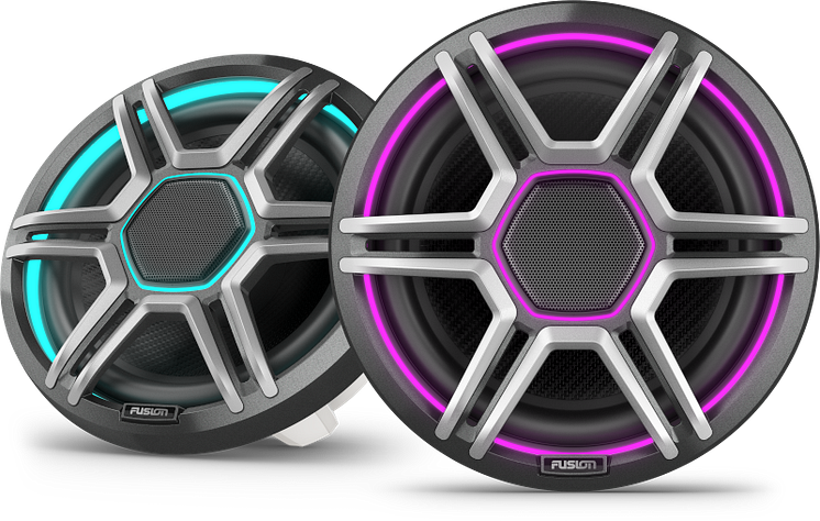 FusionApolloSpeakers_8.8inch_SportsGray_FrontLeft_Blue_Magenta_Group.png