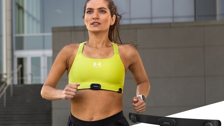 Sopivaksi ja suorituskykyiseksi suunniteltu ainutlaatuinen sykevyö napsautetaan kiinni urheiluliiveihin suoritustietojen tallentamista varten