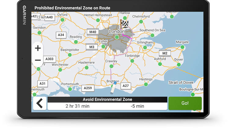 - Reititys ympäristövyöhykkeiden mukaan: Opastaa ja varoittaa reitillä olevista ympäristövyöhykkeistä.