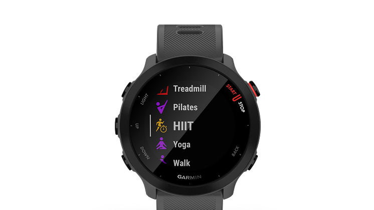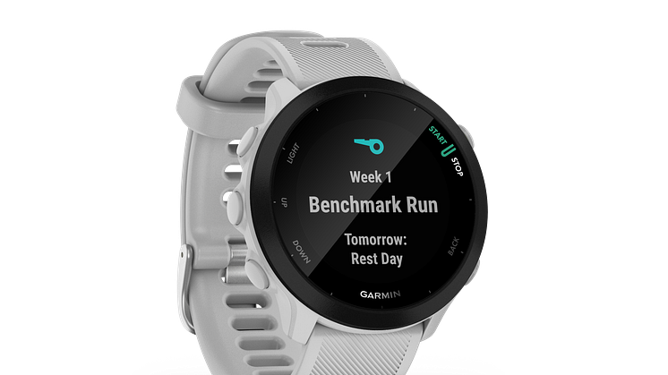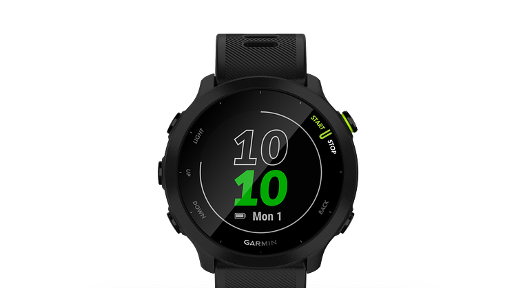 Garmin® on tänään esitellyt Forerunner® 55 GPS-juoksuälykellon, joka sopii kaikentasoisille juoksijoille ja aivan erityisesti aloittelijoille. Juoksu- tai kävelysuoritus käynnistetään yhdellä painalluksella, minkä jälkeen laite mittaa ja näyttää aikaa, matkaa, nopeutta, vauhtia ja sykettä. Forerunner 55:ssä on kattavat juoksutiedot, päivittäin ehdotetut harjoitukset, urheilusovelluksia muihin lajeihin ja paljon muuta. Garmin julkisti Forerunner 55 GPS-juoksukellon Global Running Day:n yhteydessä, jolla kannustetaan aloittelevia juoksijoita parantamaan elämänlaatuaan juoksun avulla.