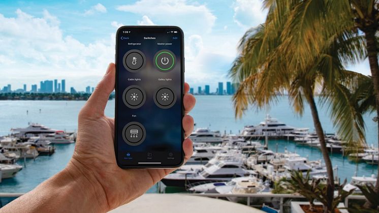 - Käyttäjä voi seurata ja hallita jopa viittä veneen kytkintä etäyhteyden kautta sekä varmistaa, että veneen järjestelmät ovat käyttövalmiina, kun on aika lähteä vesille.