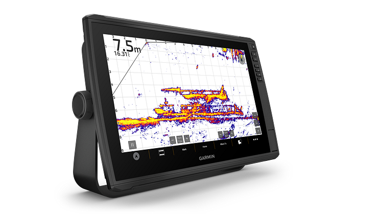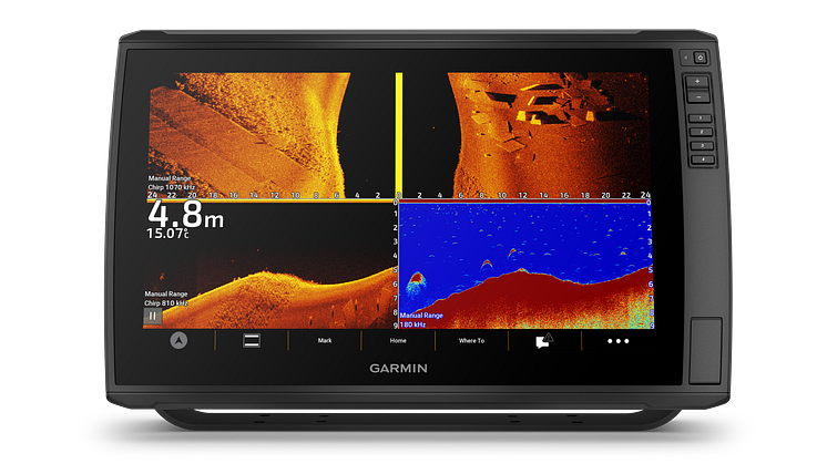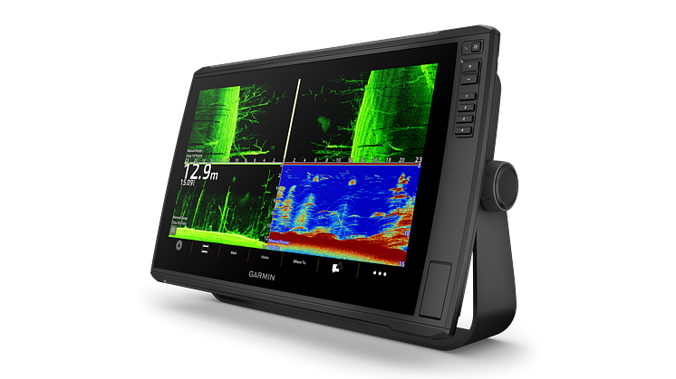 - · Integroitu kaikuluotain: Valikoidut mallit myydään pakettiratkaisuna GT56UHD-anturin kanssa, joka näyttää selkeästi veneen alla ja sivuilla olevat rakenteet ja kalat. Ensiluokkainen Garmin GT56UHD-anturi tuottaa skannaavaa Ultra High-Definition ClearVü™- ja SideVü™-luotainkuvaa sekä perinteistä Garmin CHIRP -luotainkuvaa.