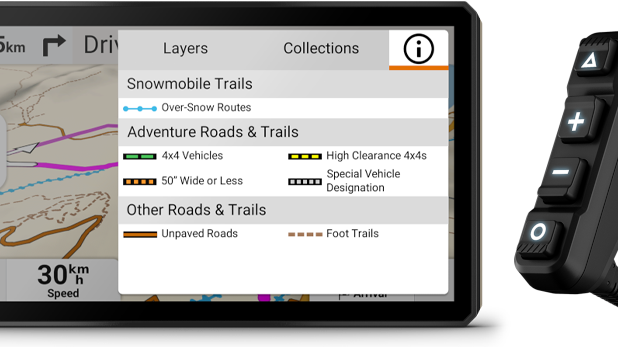 Matkapuhelinverkon ulottumattomiin yltävillä retkillään ajajat voivat pitää yhteyttä toisiinsa pariliittämällä yhteensopivan inReach® SOS-satelliittiviestintälaitteen3. Tällöin käytössä ovat kaksisuuntainen viestintä, johon kuuluvat valikoiduissa laitteissa ääni- ja kuvaviestit, ja sijaintipaikannus 100% maailmanlaajuisessa Iridium®-satelliittiverkossa. Hätätilanteessa laitteen käyttäjä voi lähettää interaktiivisen SOS-viestin 24 tuntia vuorokaudessa miehitettyyn, kansainväliseen Garmin Response℠-hätäpalvelujen koordinointikeskukseen.