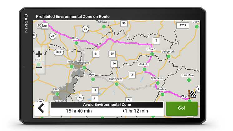 Valittavissa on mukautettu raskaan liikenteen reititys2ajoneuvon mittojen ja painon perusteella. Rekkanavigaattori parantaa myös tilannetietoisuutta varoittamalla edessä olevista siltojen korkeuksista, painorajoituksista, tiukoista mutkista, jyrkistä nousuista, jne. Uusi reititys ympäristövyöhykkeiden mukaan antaa opastusta ja varoituksia reitillä olevista ympäristövyöhykkeistä. Reittisuunnittelutoiminnolla voi tarkastella koko reittiä, lisätä tankkaus- ja taukopaikkoja ja yöpymiskohteita.