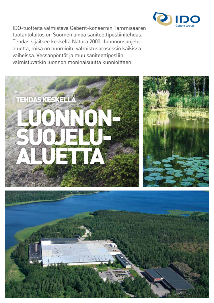 Tiesitkö, että Tammisaaren tuotantolaitoksemme sijaitsee keskellä Pohjanpitäjänlahden Natura 2000 -luonnonsuojelualuetta? Matalaa vuonoa muistuttavan lahden kasvilajisto on poikkeuksellisen runsas ja alue on myös linnustollisesti merkittävä. Vessanpöntöt ja muu saniteettiposliini valmistuvatkin luonnon moninaisuutta kunnioittaen.