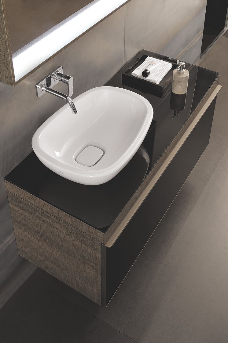 Citterio-kylpyhuonemallisto pesuallas tason päälle asennettuna