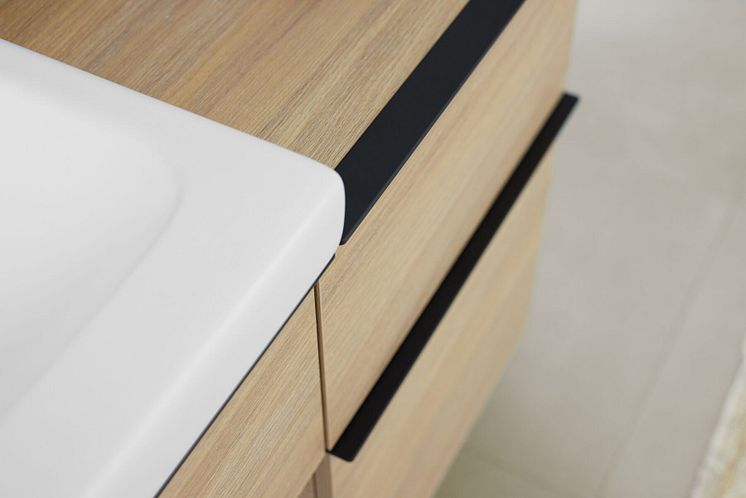 Geberit iCon-pesuallas mattavalkoisena ja mustat vetimet