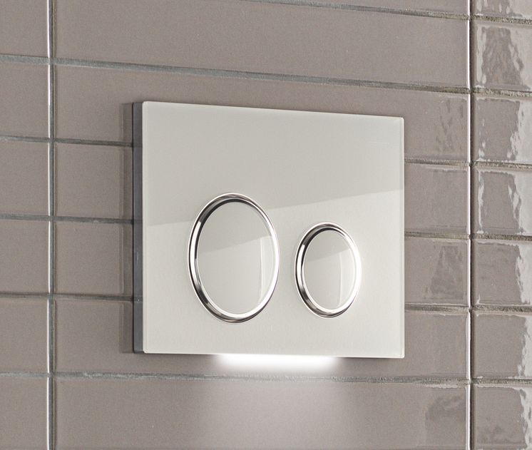 Geberit mukavuusvalo huuhtelupainikkeen alla lähikuva