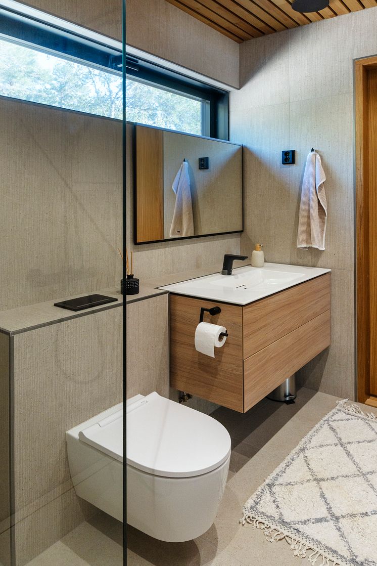 Geberit ONE -tasoallas ja -kaluste tammen sävyssä, Acanto-seinä-wc-istuin.jpg