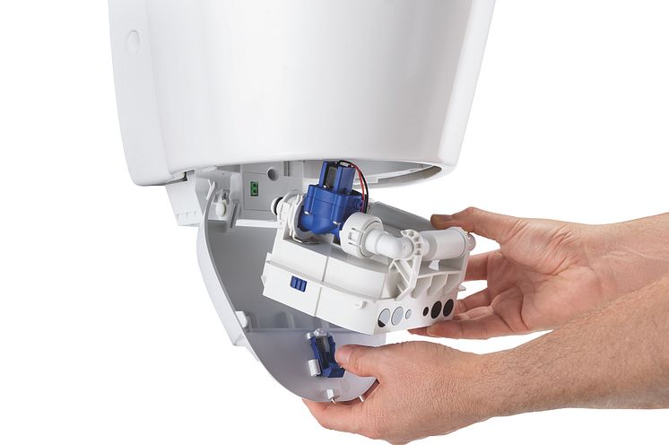 Geberit-urinaali, huuhtelun ohjausyksikkö urinaalin alla