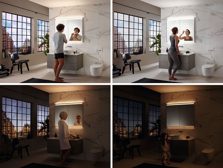 GeberitONE-sarjan ComfortLight-valaistus eri vuorokauden aikoina