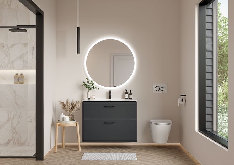 IDO Glow Art seinä-wc, IDO Sense Art allaskaluste, Option Round peili